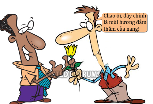 - Cậu đưa bông hồng lên mũi, nhắm mắt, từ từ hít vào thật sâu rồi nói: 'Chao ôi, đây chính là mùi hương đằm thắm của nàng!' – Hiểu rồi chứ?