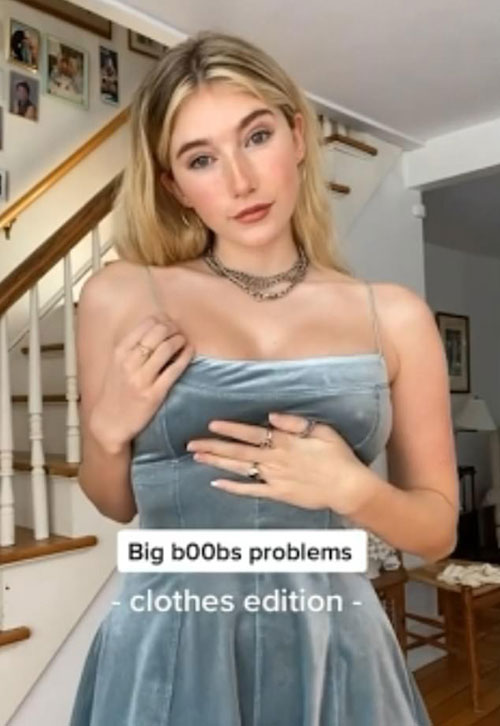 Gần đây, Billie tải lên ba video dưới nicknname @billiebopbillie trên TikTok để khẳng định cô gặp rất nhiều khó khăn trong cuộc sống với bộ ngực khủng. Billie cho biết cô phải mặc ít nhất ba chiếc bra thể thao để có thể tập gym. Cô gái 23 tuổi cũng thường xuyên làm bẩn áo trong bếp. Bộ ngực của cô luôn chạm vào đĩa thức ăn mỗi khi Billie nghiêng người về phía trước để lấy nước sốt.