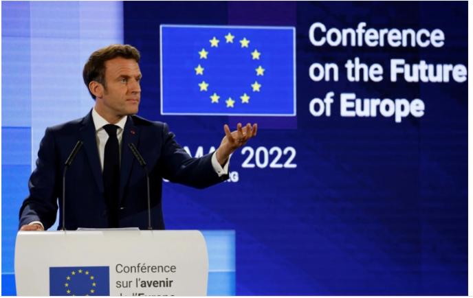 Tổng thống Pháp Emmanuel Macron phát biểu tại Hội nghị về Tương lai châu Âu ngày 9/5 tại Strasbourg, Pháp (Ảnh: Reuters).