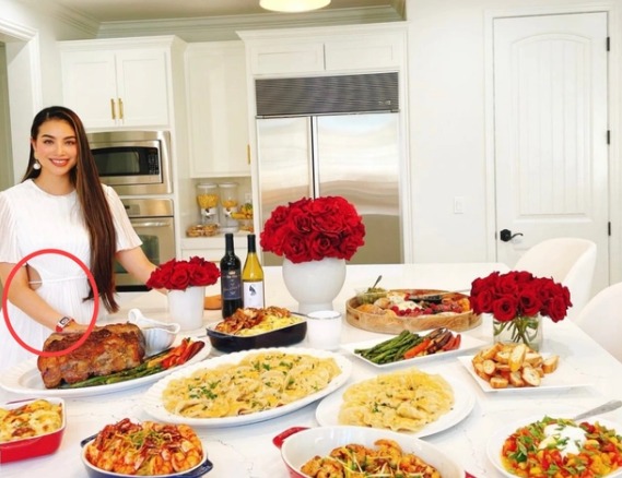 Ngày 9/5, Phạm Hương tiếp khoe hình ảnh bàn tiệc thịnh soạn bao gồm nhiều món hải sản cùng bánh ngọt được trang trí chẳng khác nào nhà hàng 5 sao. Không những thế, góc bàn ăn cũng cho thấy mức độ rộng lớn và hiện đại bên trong ngôi biệt thự.