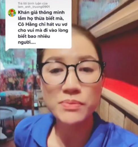 Hành động của Trang Trần khiến nhiều người hâm mộ bà Hằng bức xúc và phản bác lại nữ người mẫu. Trong số này, đáng chú ý nhất là bình luận của một khán giả so sánh Đàm Vĩnh Hưng và bà Hằng: “Khán giả thông minh lắm họ thừa biết mà, Cô Hằng chỉ hát vu vơ cho vui mà đi vào lòng biết bao nhiêu người...”.