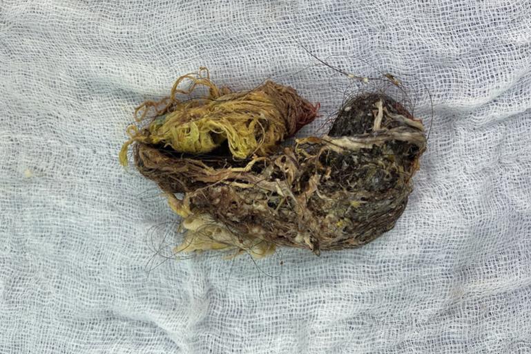 Búi tóc sau phẫu thuật lấy ra khỏi dạ dày (Ảnh: Bệnh viện Đa khoa khu vực Quảng Nam).