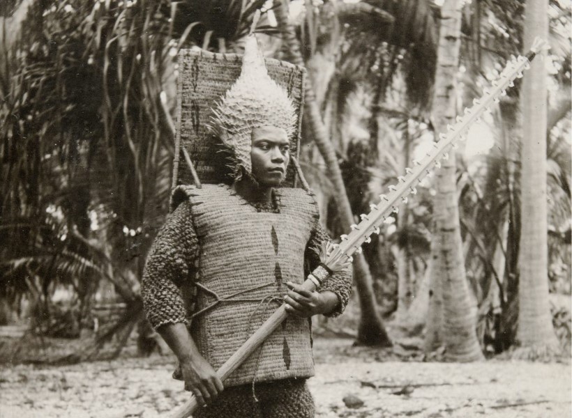 Cuối thế kỷ XVIII, thực dân phương Tây phát hiện Kiribati (quốc đảo ở Thái Bình Dương). Thay vì giáp sắt, nón thiếc, các chiến binh ở đây đội mũ da cá nóc và mặc áo xơ dừa.