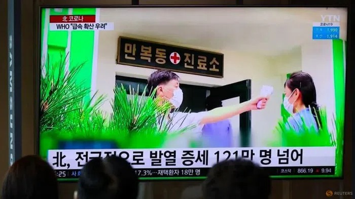 Người dân ở Seoul, Hàn Quốc, xem tin tức về đợt bùng phát COVID-19 ở Triều Tiên trên truyền hình ngày 17/5. (Ảnh: Reuters)