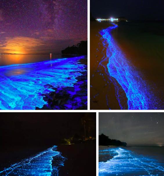 Từ lâu, Maldives đã trở thành địa điểm du lịch trong mơ của nhiều người. Với bãi biển màu xanh ngọc bích trải dài bất tận cùng bầu trời trong veo, nơi đây còn được mệnh danh là "thiên đường" du lịch. Tuy nhiên, quốc đảo trứ danh này không chỉ nổi tiếng bởi những bãi biển mà còn hút hồn du khách bởi một bãi biển phát sáng như những vì sao tại dải Ngân hà khi màn đêm buông xuống.