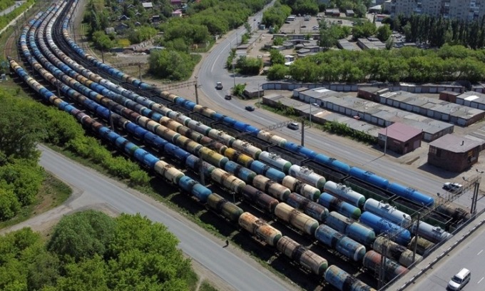 Các toa tàu chở dầu tại Omsk, Nga, hôm 24/5. Ảnh: Reuters.