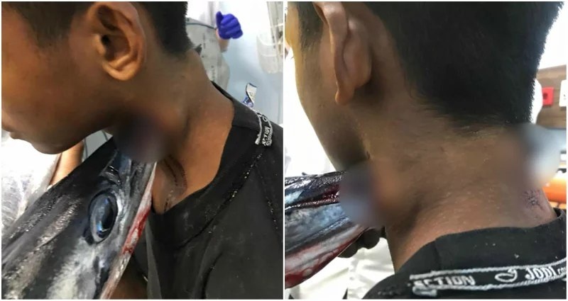 Con cá găm vào cổ suýt lấy mạng nam thiếu niên. (Ảnh: Oddity Central)