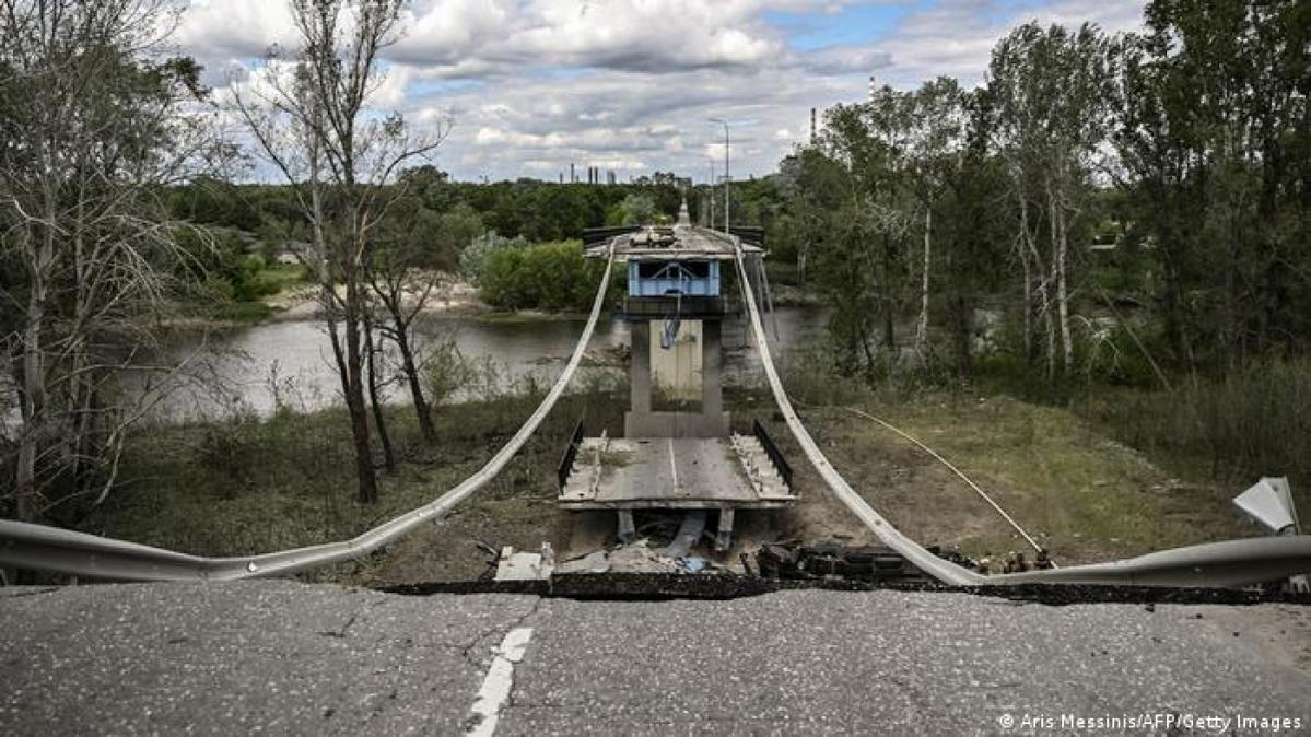 Cây cầu nối Sievierodonetsk và Lysychansk bị phá hủy. Ảnh: AFP