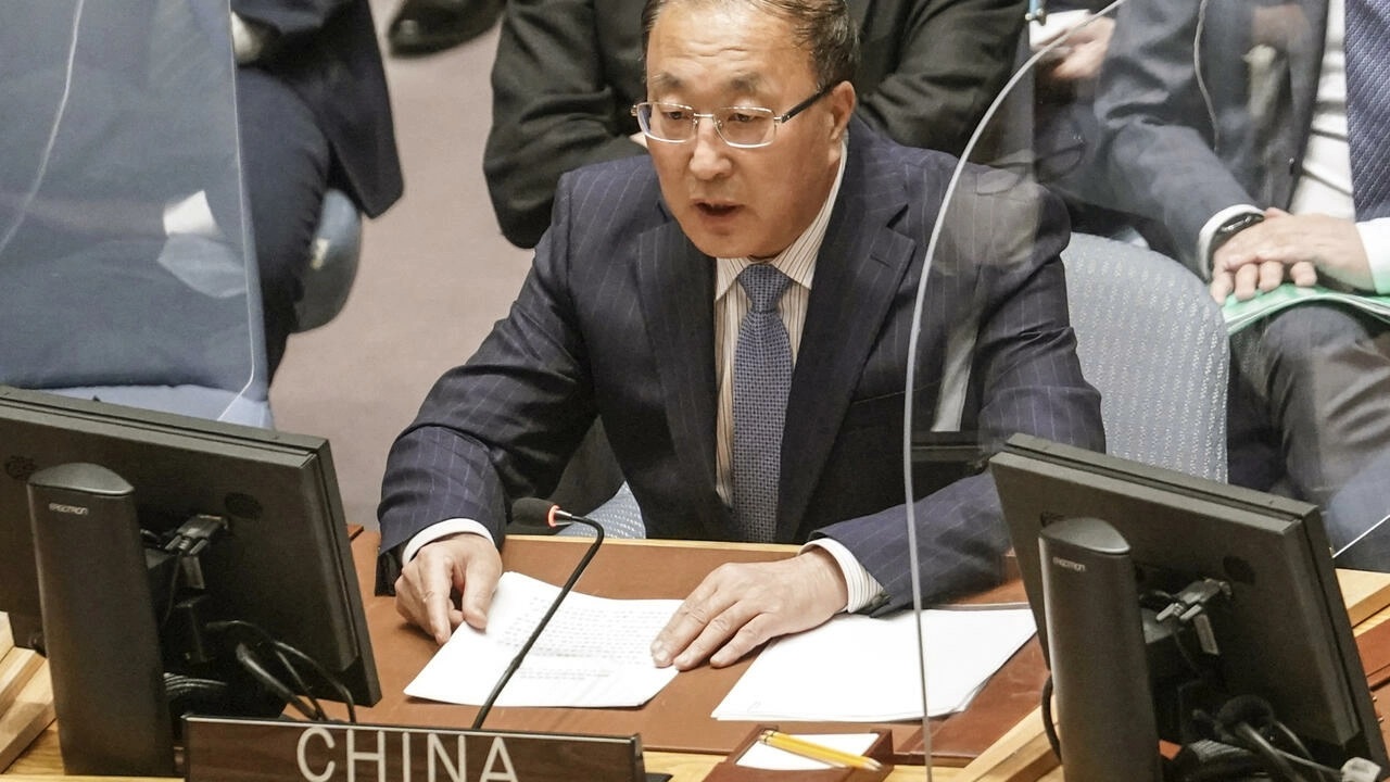 Đại sứ Trung Quốc Trương Quân phát biểu tại Hội Đồng Bảo An Liên Hiệp Quốc ngày 22/03/2022 về vụ Bắc Triều Tiên bắn tên lửa đạo đạo liên lục địa. AP - Bebeto Matthews