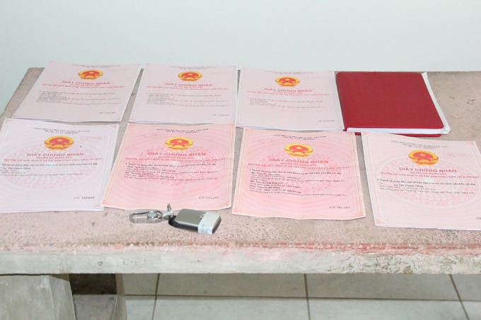 10 giấy chứng nhận quyền sử dụng đất giả cùng nhiều tài liệu liên quan đã bị thu hồi.