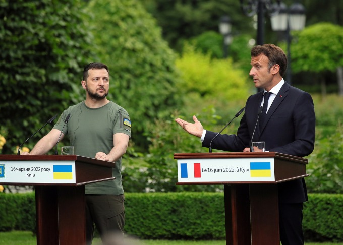 Tổng thống Ukraine Zelensky và Tổng thống Pháp Macron trong cuộc họp báo chung tại Kiev ngày 16/6. Ảnh: Reuters.