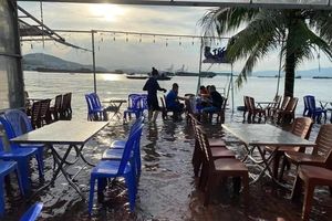 Các quán ăn bên bờ vịnh Hạ Long cũng ngập trong nước, khiến người dân và du khách vừa nhậu vừa ngâm chân trong nước biển.2 ngày 17-18/6, vào buổi chiều, nước biển dâng rất cao, khiến nhiều khu phố tại TP.Hạ Long (Quảng Ninh) ngập sâu trong nước biển. Một số quán ăn bên bờ vịnh Hạ Long tại khu vực dưới chân cầu Bãi Cháy, thuộc phường Yết Kiêu, TP.Hạ Long bị ngập nặng. Tuy nhiên, mực nước không sâu nên lại khiến các thực khách thích thú vì vừa nhận vừa được ngâm chân trong nước biển.
