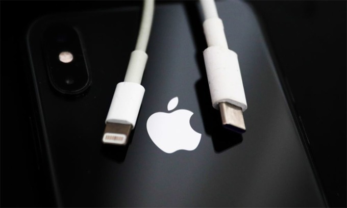 Hai chuẩn sạc phổ biến với smartphone hiện nay là lightning của Apple (trái) và USB-C. Ảnh: Bloomberg