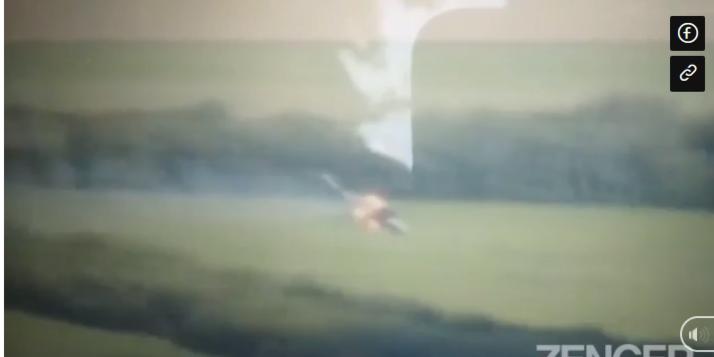 "Đoạn phim ban đầu về vụ bắn hạ máy bay trực thăng Mi-24 của Nga ở vùng Zaporizhzhia. Nó đã bị một tên lửa từ Stinger MANPADS bắn hạ", theo tiểu đoàn Azov.
