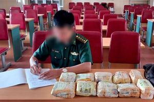 Kiểm tra bên trong ba lô có 10 khối hình chữ nhật được bọc bằng potylen màu vàng, có chữ nước ngoài, bên trong có chứa tinh thể màu trắng (khoảng 10 kg) nghi là ma túy tổng hợp.