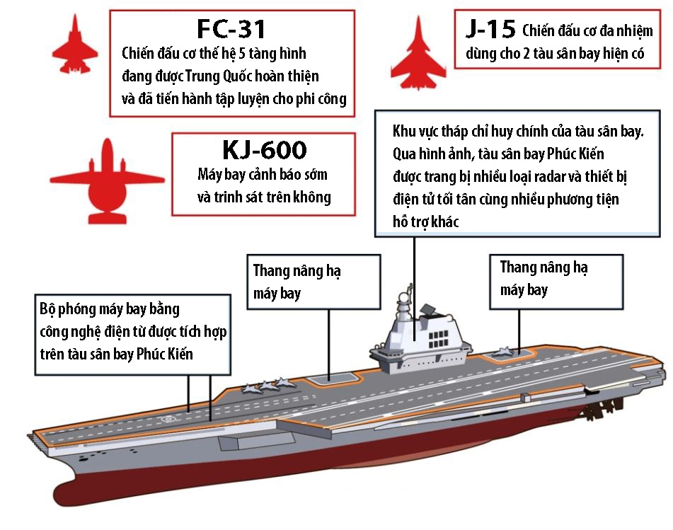 Những đặc điểm nổi bật của tàu sân bay Phúc Kiến và các loại máy bay có thể mang theo