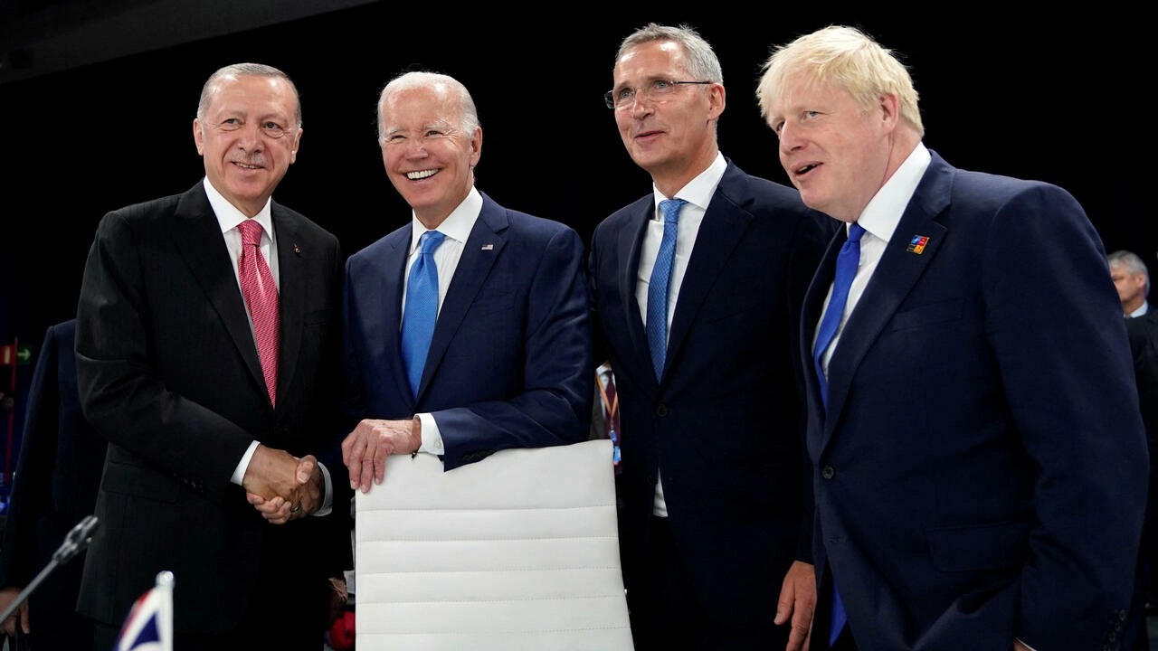 Từ trái qua phải: Tổng thống Thổ Nhĩ Kỳ Recep Tayyip Erdogan, tổng thống Mỹ Joe Biden, tổng thư ký khối NATO Jens Stoltenberg và thủ tướng Anh Boris Johnson trước cuộc họp thượng đỉnh NATO, Madrid, Tây Ban Nha, ngày 29/06/2022. REUTERS - POOL