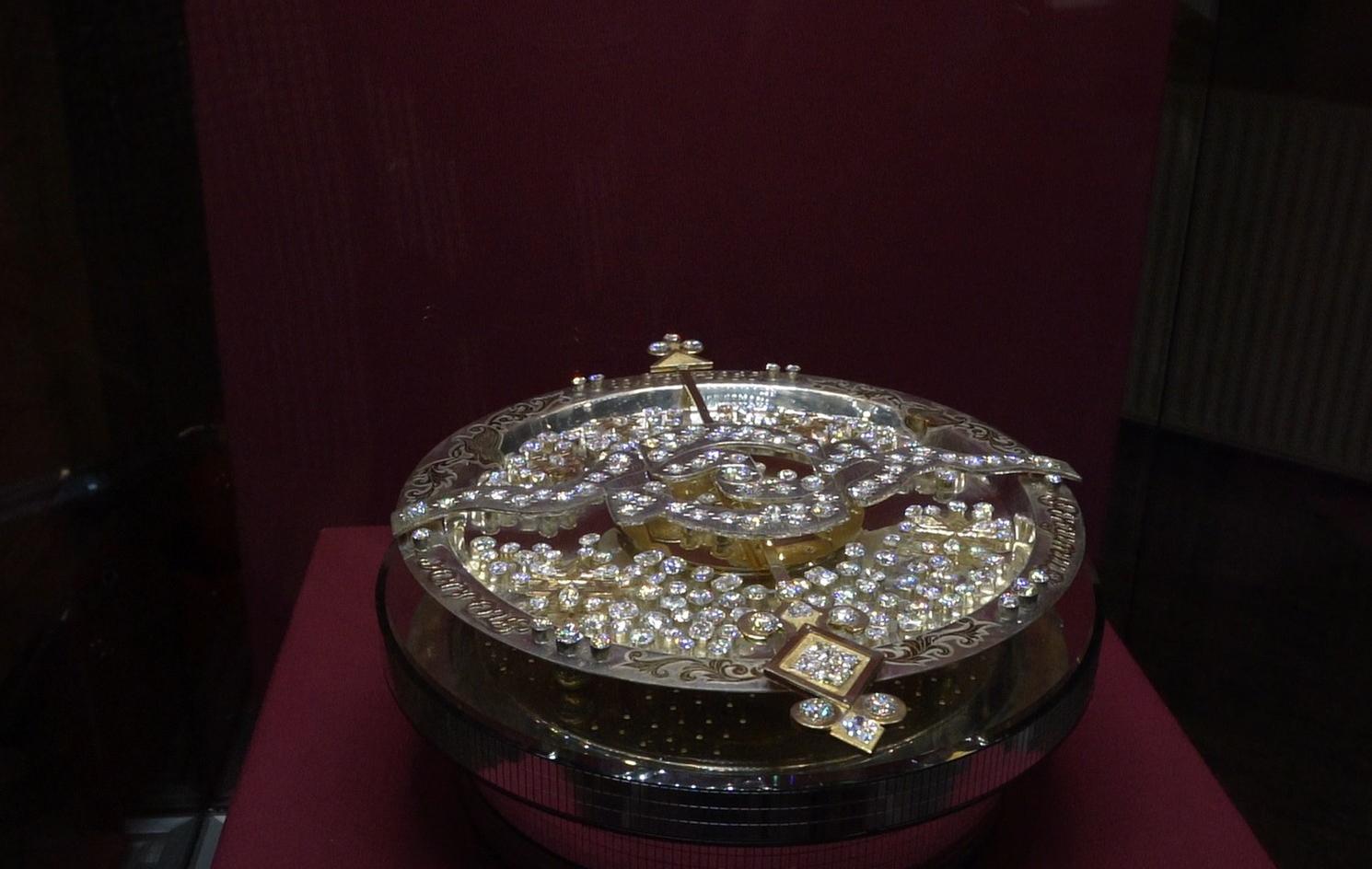 Tại triển lãm, bạn có thể ngắm chiếc trâm cài áo gắn 368 viên kim cương, viên to nhất nặng 2 karat; hai viên kim cương đã chế tác khổng lồ là viên “Bông hồng rực lửa” nặng 11 karat và viên “Hoa hướng dương” nặng 9 karat. Bạn cũng sẽ “lóa mắt” với chiếc đĩa “Cực lạnh Yakutia” trang trí theo chủ đề la bàn gồm 250 viên kim cương với các đặc tính và bề mặt khác nhau, mà viên kim cương nhỏ nhất nặng 1 karat; hay thực sự được tận mắt thấy viên kim cương đen quí hiếm. Ở đây cũng lưu giữ bản sao một viên kim cương hồng đã được đấu giá tại châu Âu với giá gần 28 triệu USD.