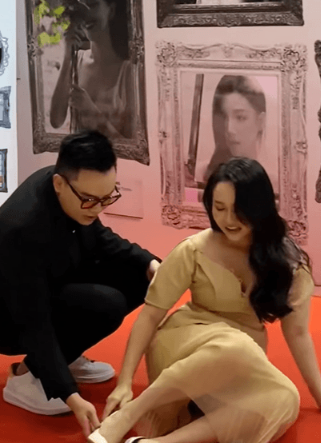 Thậm chí khi cô nàng liên tục té ở sự kiện, nếu như người đang có bầu sẽ rất hoảng hốt, trong khi Trúc Anh xử lý tình huống này khá điềm tĩnh, dù liên tục bị té.