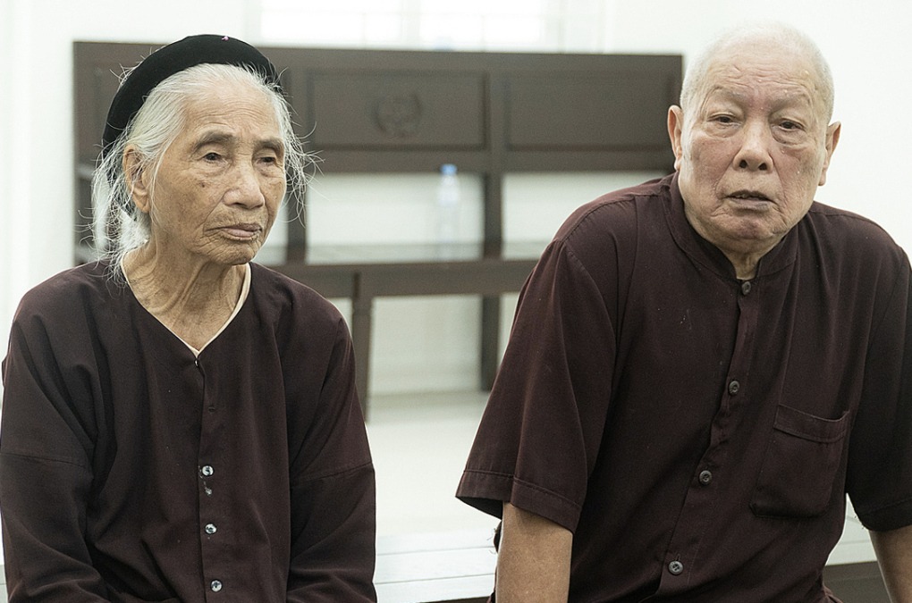 Cụ Đỗ Văn Hợp và vợ tại TAND Hà Nội, tháng 7/2020. Ảnh: Thanh Lam