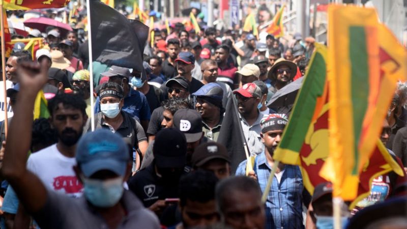 Người biểu tình từ khắp cả nước tới Colombo yêu cầu ông từ chức sau các đợt biểu tình nhiều tháng qua phản đối cách quản lý yếu kém của ông trong khủng hoảng kinh tế mà nước này phải đối mặt.