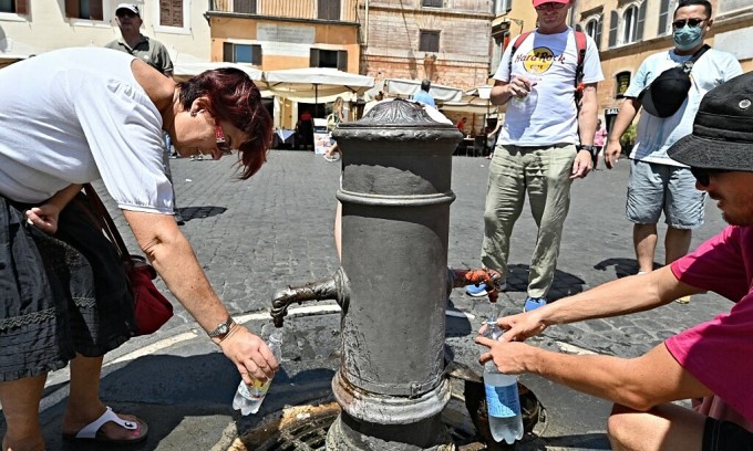 Du khách hứng nước tại một đài phun nước ở thủ đô Rome, Italy ngày 19/7. Ảnh: AFP.