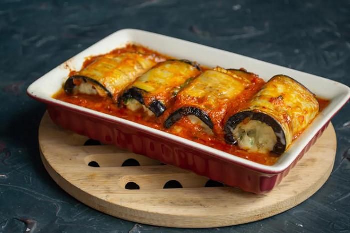 3 quả cà tím, phô mai ricotta, phô mai mozzarella, 3 quả trứng, mùi tây, cà chua đóng hộp, tỏi, lá húng quế, muối, tiêu, lá kinh giới khô.