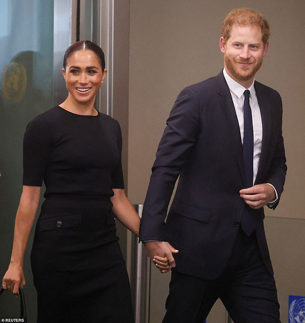 Harry - Meghan tay trong tay đến trụ sở Liên Hợp Quốc hôm 18/7. Ảnh: Reuters