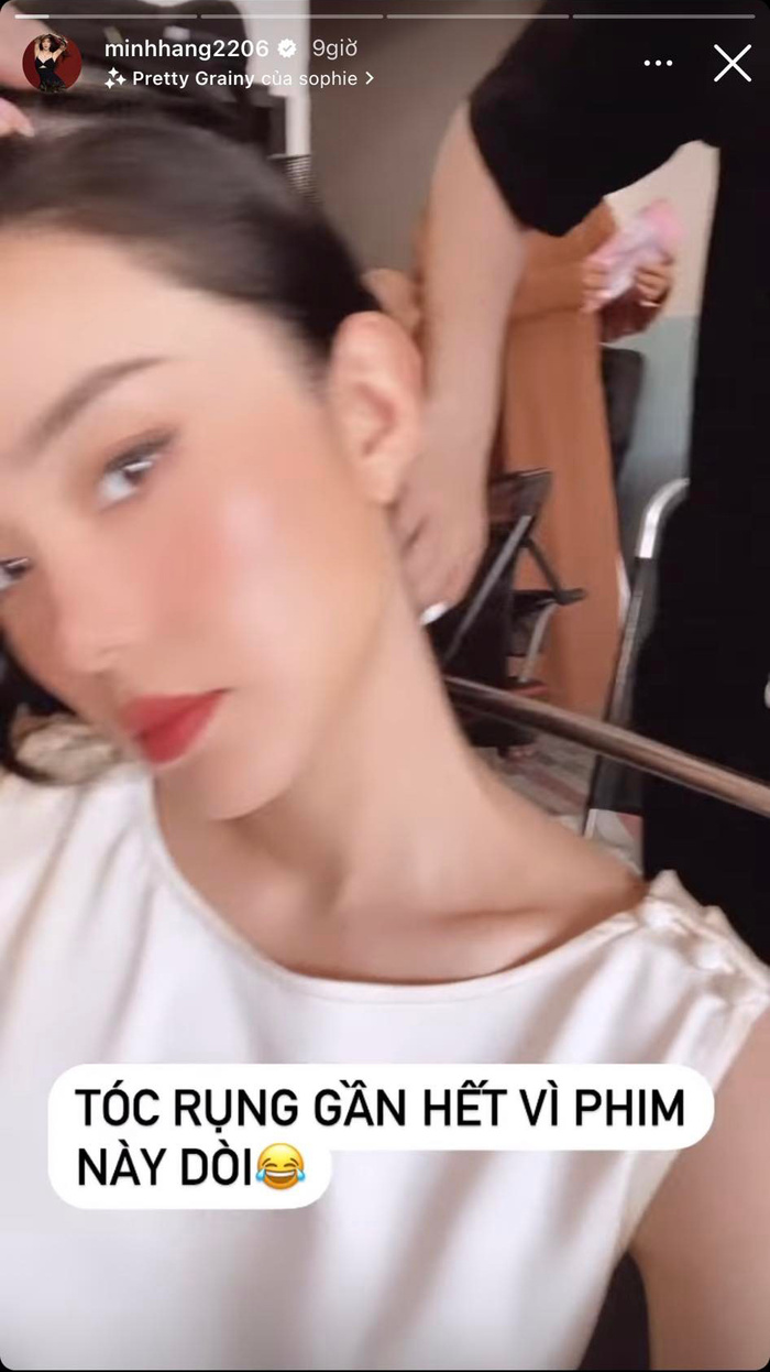 Mới đây nhất Minh Hằng đã chia sẻ những hình ảnh của bản thân trên Instagram cá nhân khiến nhiều khán giả, đặc biệt là các fan của giọng ca Một vòng trái đất không khỏi lo lắng. Cụ thể cô nàng khoe khoảnh khắc đời thường kèm theo dòng trạng thái thông báo tình trạng sức khỏe. “Tóc rụng gần hết vì phim này rồi”, Minh Hằng hài hước viết.