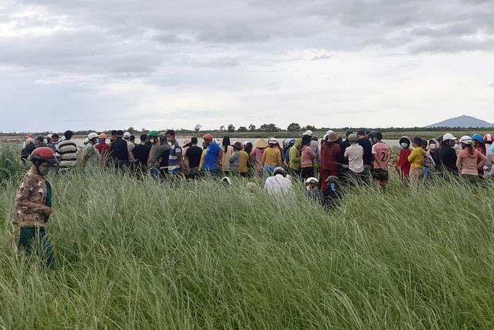 Nhiều người dân tập trung theo dõi khi phát hiện thi thể thanh niên trôi gần bờ sông Ba (Phú Yên). Ảnh: Hoài An.