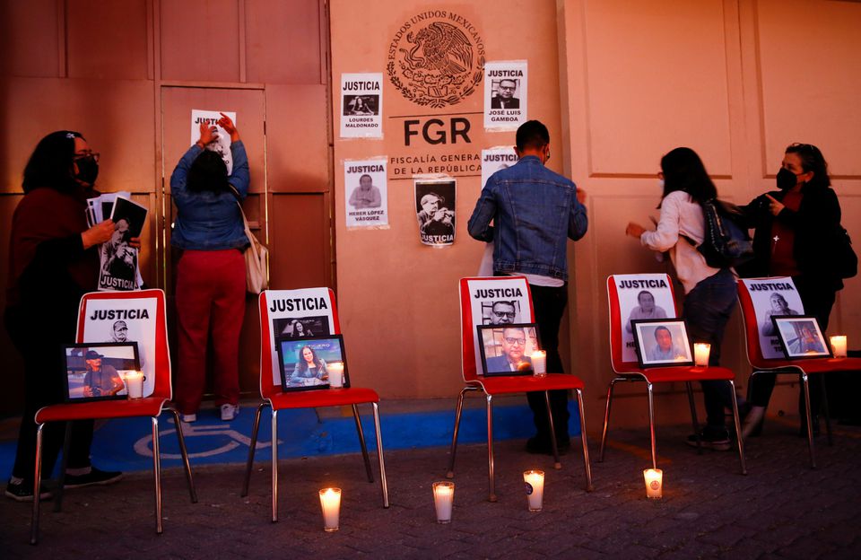 Người dân thắp nến bày tỏ sự thương xót đối với các nhà báo thiệt mạng tại Ciudad Juarez, Mexico ngày 14/2/2022. Ảnh: Reuters