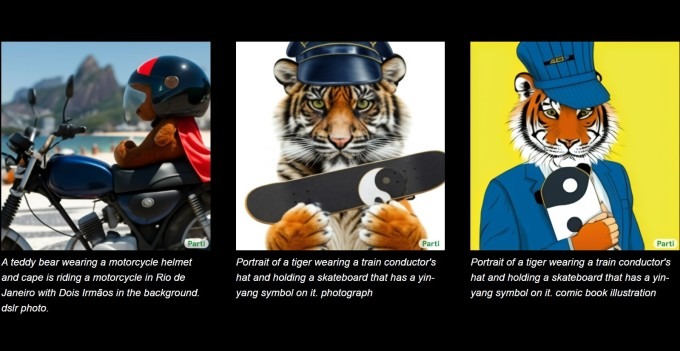 Mô h́nh Parti cho phép tạo h́nh ảnh đúng như mô tả và mong muốn của người dùng. Công nghệ này có thể hỗ trợ những người chuyên làm công việc sáng tạo h́nh ảnh như nghệ sĩ, nhiếp ảnh gia, nhà thiết kế thời trang, đồ họa... Khi họ có ư tưởng về một bức ảnh, chỉ cần viết các chi tiết mong muốn, AI sẽ phân tích và cho ra bức ảnh gợi ư cho ư tưởng đó giúp họ tăng khả năng sáng tạo. Chỉ cần thay đổi một câu, từ, hay chi tiết trong văn bản có thể cho ra bức ảnh khác nhau.