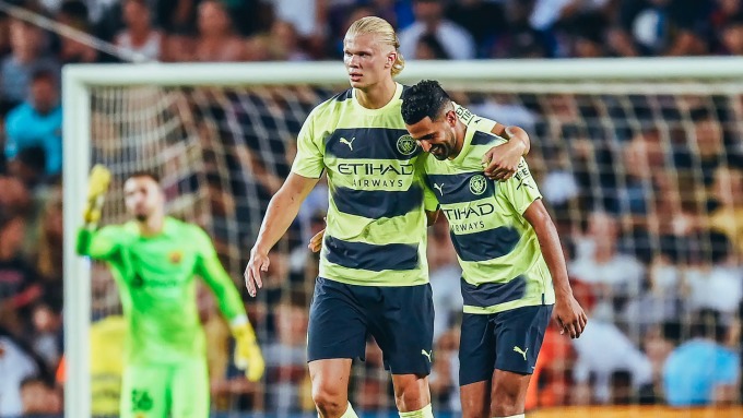 Erling Haaland vào thay người, mang về quả phạt đền để Ryad Mahrez gỡ hoà 3-3 ở phút 90+9 trận giao hữu trên sân Barca ngày 24/8.