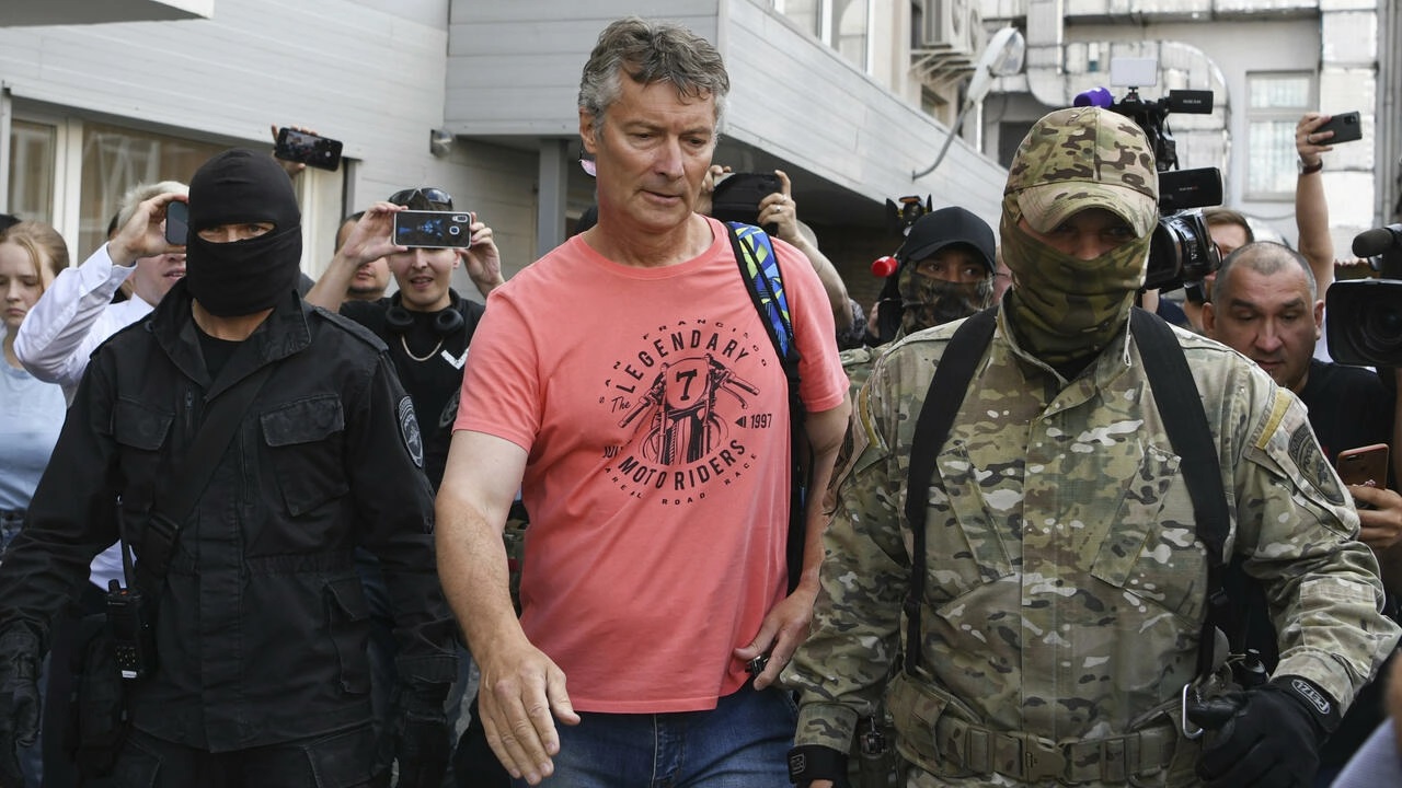 Evguéni Roïzman, cựu thị trưởng Ekaterinbourg, Nga, bị cảnh sát giải đi, ngày 24/08/2022. © Vladimir Podoksyonov / URA.RU via AP