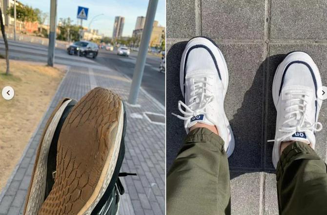 Nhiệt độ cao làm nóng chảy đế giày của phóng viên Straits Times. Ảnh: ST