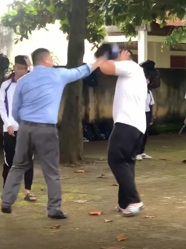 Tối khuya hôm qua (8/9), mạng xã hội đăng tải clip ghi lại cảnh một thầy giáo dùng thước gỗ đánh 4 cái vào người 1 nam sinh. Đồng thời, thầy giáo này tiếp tục dùng thước đánh 3 cái và dùng mũ bảo hiểm đánh 1 cái vào người nam sinh đứng bên cạnh.