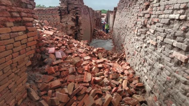 Một số bức tường bị sập do lũ lụt. Ảnh: CNN