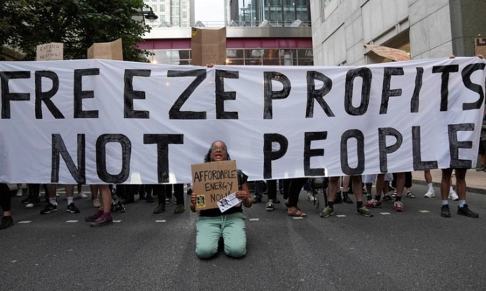 Biểu tình phản đối tăng giá năng lượng ở London, Anh, ngày 26/8. Ảnh: Reuters.