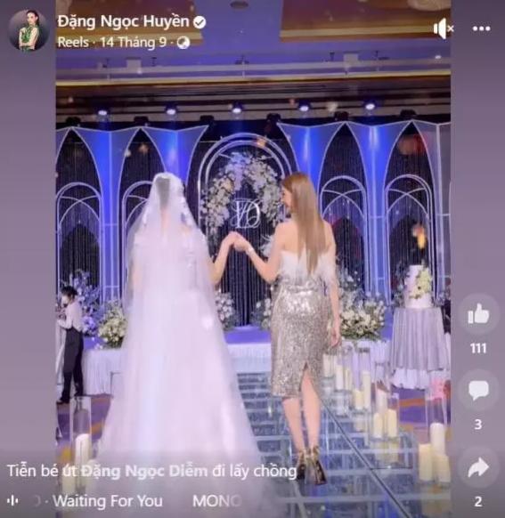Trên trang cá nhân của Huyền Baby và em gái Đặng Ngọc Diễm liên tục chia sẻ loạt ảnh, clip liên quan đến ngày vui của gia đình. Theo đó, Ngọc Diễm chính thức trở thành vợ người ta. Mới nhất trên mạng xã hội, cựu hot girl đã đăng tải clip dắt tay em gái vào lễ đường. Kèm theo đó bà mẹ 2 con chia sẻ: "Tiễn bé út Đặng Ngọc Diễm đi lấy chồng".