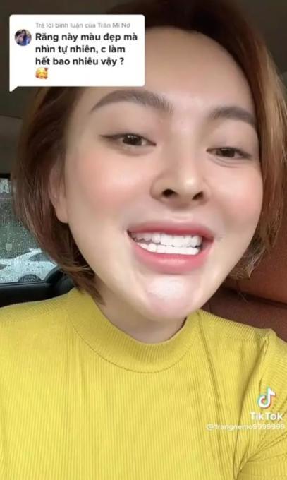 "Mình mới làm lại răng, 20 chiếc răng mới nhỏ và thanh thoát hơn. Quan trọng là khi cười sẽ không còn thấy một 'chùm răng' nữa mà hàm răng trông nhỏ xinh hơn", cô nói.