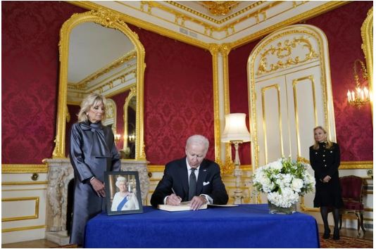 Sau khi ký sổ tang, Tổng thống Biden cho biết trái tim của ông đang hướng về hoàng gia do sự ra đi của nữ hoàng đã để lại một “khoảng trống khổng lồ”.