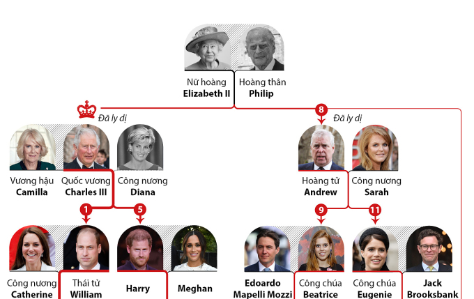 Thứ bậc kế vị ngai vàng Anh sau khi Nữ hoàng qua đời.