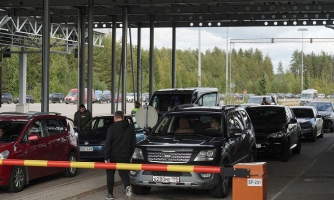 Xe ôtô xếp hàng dài để vào trạm kiểm soát Vaalimaa tại cửa khẩu biên giới Nga - Phần Lan hôm 22/9. Ảnh: Reuters.
