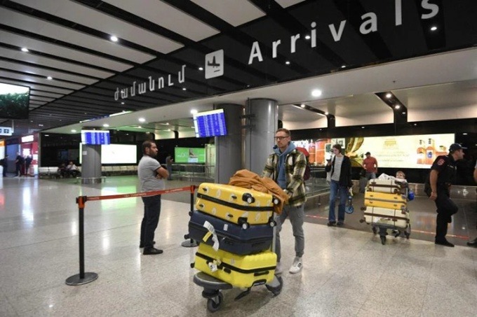 Những người Nga đến sân bay Zvartnots của Armenia hôm 21/9. Ảnh: AFP.