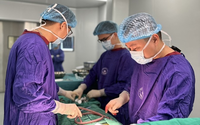 Các bác sĩ chích rạch vùng tổn thương để loại bỏ ổ viêm, hoại tử cho người bệnh. Ảnh: Bệnh viện cung cấp