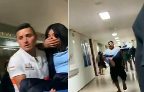 Những đoạn video lan truyền trên mạng cho thấy một cảnh tượng hỗn loạn tại bệnh viện trong đó người lớn bế các học sinh mặc đồng phục vừa lao qua hành lang bệnh viện, vừa la hét một cách lo lắng.