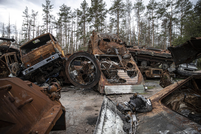 Phương tiện quân sự bị phá hủy bên ngoài thành phố Lyman ở Donetsk, miền đông Ukraine hôm 5/10. Ảnh: Anadolu Agency.