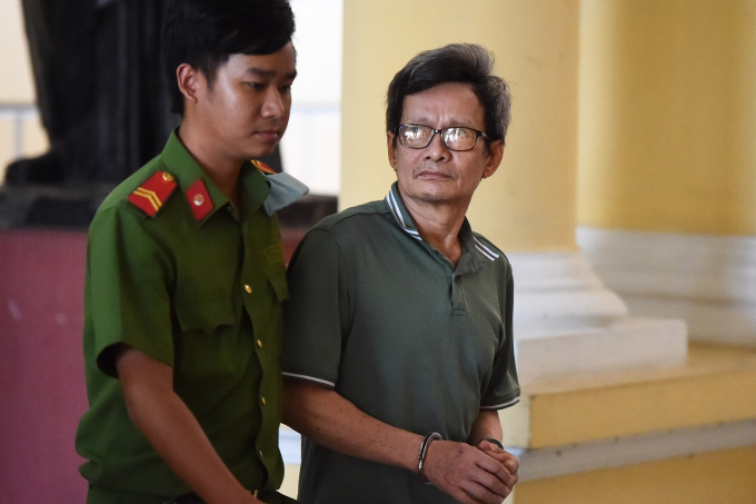 Bị cáo Trần Công Thiện người cầm đầu vụ án được dẫn vào tòa. Ảnh: Thanh Tùng