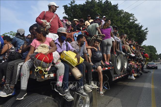 Người di cư di chuyển tới Nuevo Morelos, bang Veracruz, Mexico, trong hành trình tới Mỹ. Ảnh: AFP