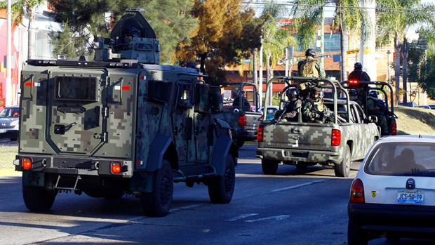 Binh sỹ Mexico tuần tra trên đường phố trong một chiến dịch năm 2014 chống lại băng đảng ma túy Jalisco New Generation. Ảnh: AFP